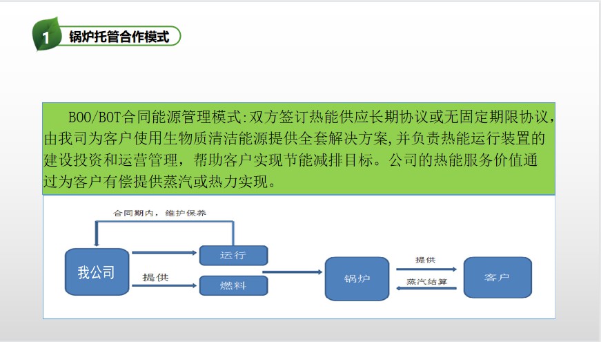 樂山勇騰生物能源有限公司,位于四川省樂山市五通橋區(qū)石麟鎮(zhèn)麒麟街463號。是一家集生物質(zhì)能源技術(shù)研發(fā)、技術(shù)推廣、產(chǎn)品制造、銷售為一體的企業(yè),專業(yè)從事生物質(zhì)能源項目投資,設備生產(chǎn),安裝運營,燃料供應,能源托管的綜合性服務企業(yè)。公司依托強大的研發(fā)和技術(shù)實力,在實踐中逐步形成了富有競爭力的“3+1”業(yè)務運營模式(燃料生產(chǎn)與銷售、鍋爐承包托管業(yè)務、設備節(jié)能改造+供熱項目投資運營),年銷售額達數(shù)千萬元。